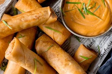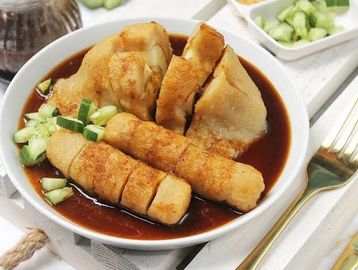 berbentuk lonjong menggunakan isian rebung, telur, dan daging yang dibungkus dengan kulit lumpia lalu digoreng hingga matang