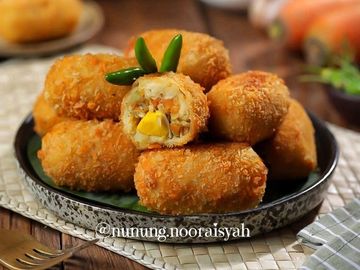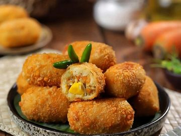makanan yang terdiri dari ragout yang dilapisi dengan putih telur dan tepung panir lalu digoreng